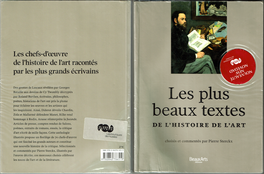 Il y a quelque temps, un ami m’a donné un livre admirable : Les plus beaux textes de l’histoire de l’art choisis et commentés par Pierre Sterckx (BeauxArts éditions, 2009).
