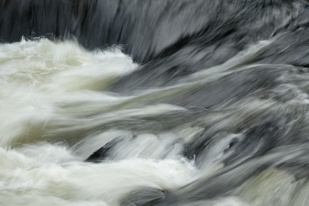 Devant l’eau vive dont les mouvements s’entrelacent avec une aisance déconcertante, on demeure immobile, les yeux rivés. Que cherche-t-on à comprendre en observant ainsi ce qui ressemble à des cordes se dévidant à toute vitesse et dont on ne verra jamais les bouts? L’épaisseur invraisemblable d’une profondeur cachée? Qu’y a-t-il derrière cette surface qui se meut hors cadre tout en se lovant sur place?