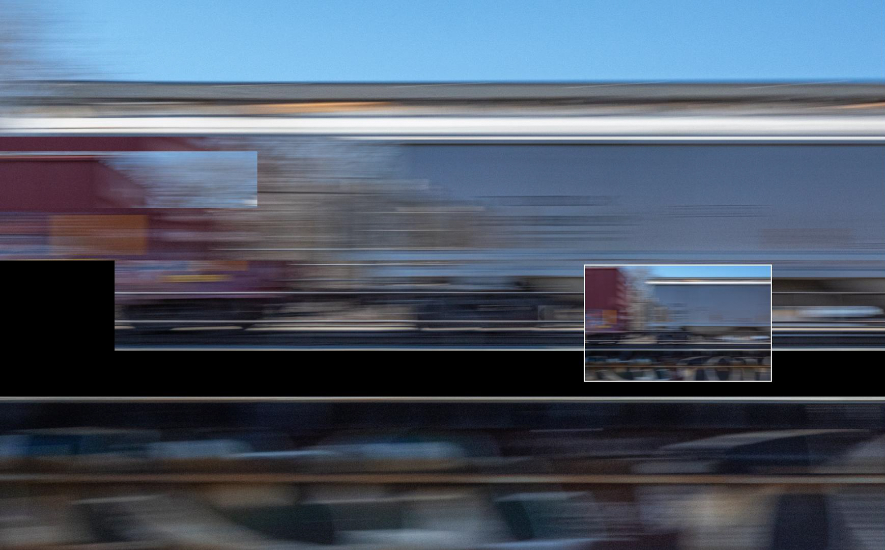 - 13. Ma photo Passage à niveau a été choisie et exposée par l’APAL dans le cadre de son exposition La beauté du flou, tenue du 1er au 31 mars 2025 à la bibliothèque Germaine-Guèvremont, à Laval. Montage électronique fait à partir d’un flou de bougé reproduit en mortaise (train de marchandises passant sur le pont de l’île Perry, à Laval-des-Rapides).