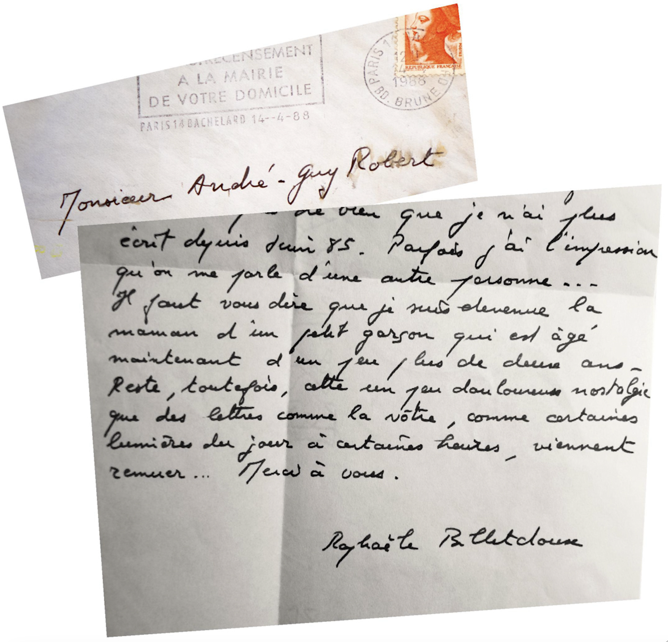 Le 24 août 1988, je reçois une lettre de Paris adressée à « Monsieur André-Guy Robert ».